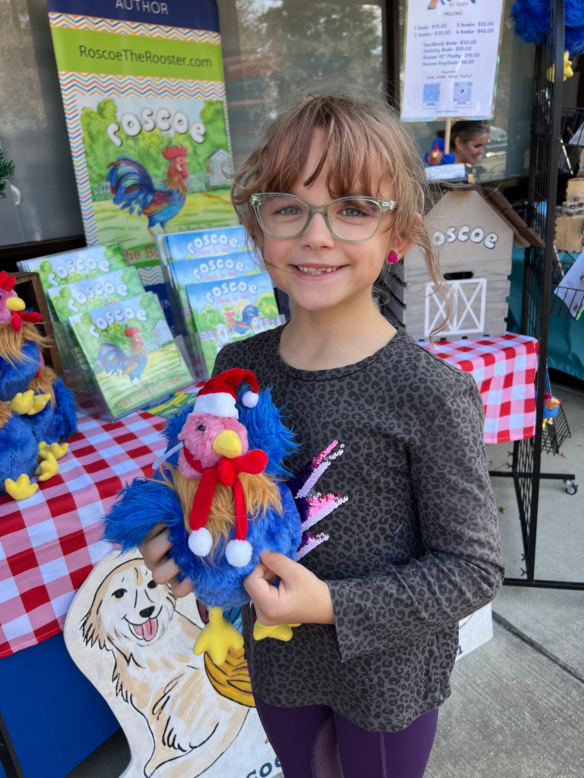 Get your very own Roscoe plushy AND his Christmas hat and scarf! Perfect for storytime snuggles, holiday photos, or keeping watch by the tree because even the best roosters need to stay cozy while protecting their flock!